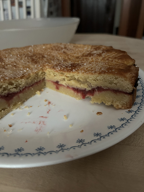 Monday night I tried making a Gateau Breton, using Ainsley Durose’s recipe. She’s an American who went to Paris for pastry school, and never came back. She has a coffee business with her French husband, and she makes all the pastries. I love to watch her little cooking vids on Insta. Anyways, it looked good but was way too doughy in the middle. I should have put it on the bottom rack for another 10 minutes. I’m going to try again, and I also found another recipe (by Edd Kimber, the Boy Who Bakes) with the same amounts of butter and egg yolks, but less flour. That might work better for me.