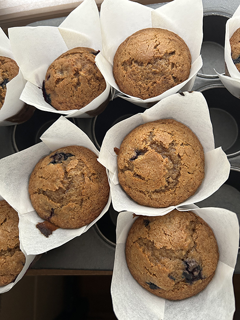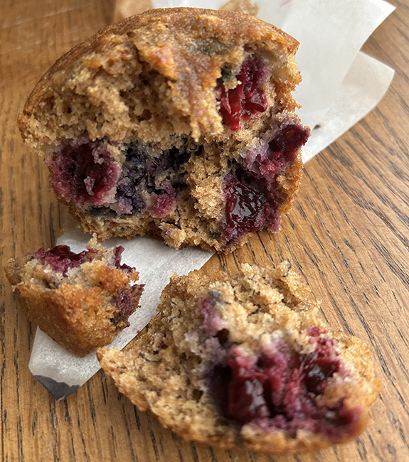 We ended up with a few too many bananas, and they get ripe so fast when it’s hot. I think I might’ve broken my everything not quite right streak with banana whole wheat blueberry muffins.