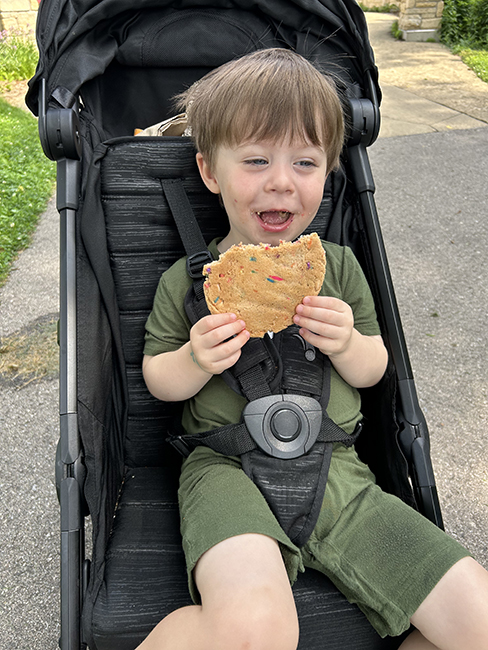 I had Jasper two days last week, Tuesday and Wednesday to make up for the Wednesday I missed because we were driving back from Pittsburgh. And Wednesday was also Emma’s dad Steve’s birthday. He’s a ’55 baby too, so he and Linda were on Washington Island for a little vacation. Jasper has a nature class out at the Aldo Leopold Center, and something about the drive and the timing,  he just doesn’t want to nap after class. This week we did class, came home and had lunch because we were so hot and hungry and tired, and then went to the park for an hour, and he still didn’t nap. But the pic below is from Tuesday, a better day. We had music class that we could stroller to, then we strollered to Colectivo for a coffee for Oma and a cookie for Jasper, and played at the park for a long time. He slept great that day. Next week after nature class I’m going to go straight to the pool and we’ll play there and then try a later nap time and see if that works.