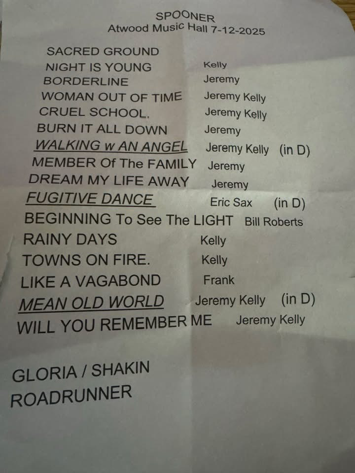 And then there was the big one – Spooner’s 50th reunion, a live show, a week ago Saturday, at the new concert hall in town, the Atwood Music Hall. It was fun and bittersweet and gone too fast. The member of the band that we were the closest with when Jeff and I were married and owned a record store and were really part of the Madison music scene is Dave Benton. I always ran down and stood on Dave’s side of the stage. Which I think in the old days tended to be stage right, but was stage left for the reunion show, possibly because he played sitting down.