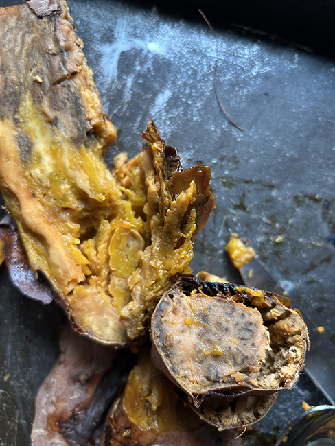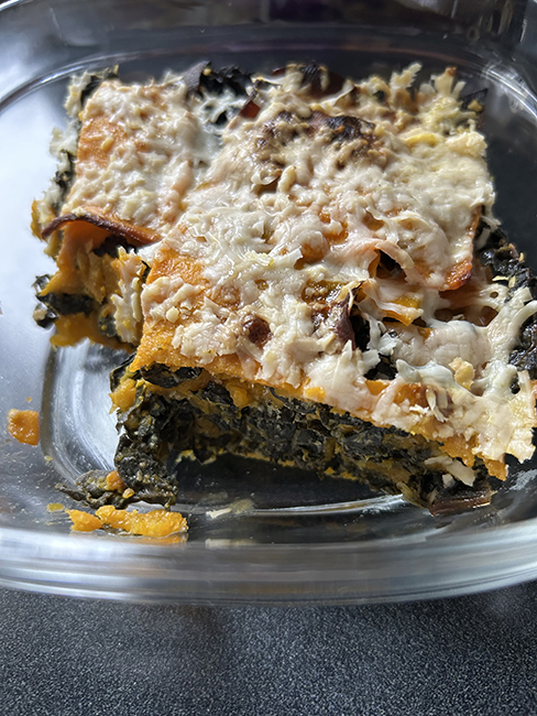 Several of the sweet potatoes from my new CSA were no good, so I used the one good one, plus another from the farmers market and steamed and added some of the squash I didn’t put in the gratin.