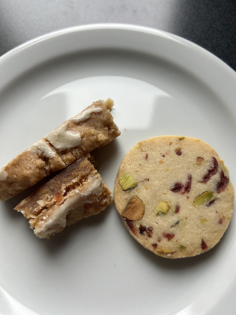 So far I’ve made the jam stars and the lebkuchen. And I tried out a new recipe for the cranberry pistachio slice & bakes. I think I’ll go with it.
