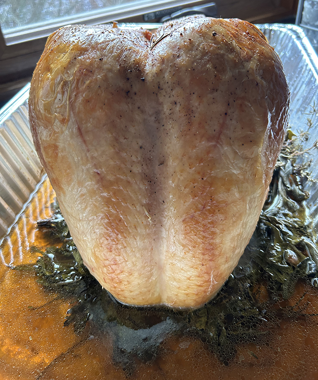 Even though I wasn’t hosting I got a local turkey and Friday morning. carved it up, froze the back, legs, and wings, and roasted the breast. It was a bit of a hack job, but I felt quite proud of myself when it was butchered & packaged & cooked. I also roasted just a breast in 2020, tho I can only find the uncooked view. Pandemic.