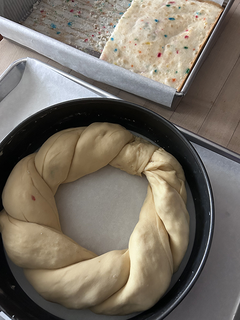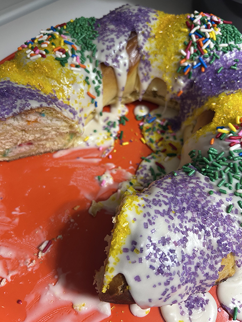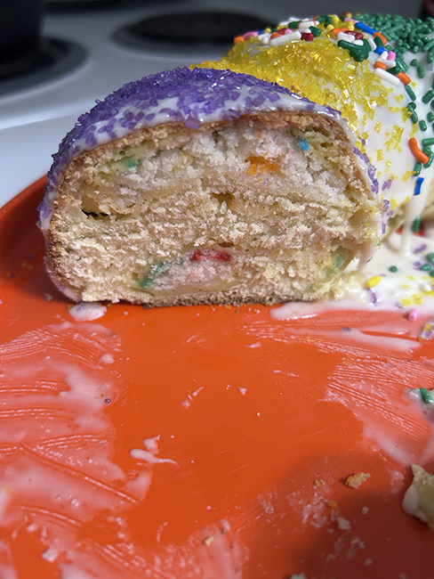 The funfetti is good, thanks Bayou St Cake – but I miss the gooey-ness of the almond filling I usually make. I’m going to try making king cake buns with the almond filling to take to the polls Tuesday, since that’s actual Mardi Gras.