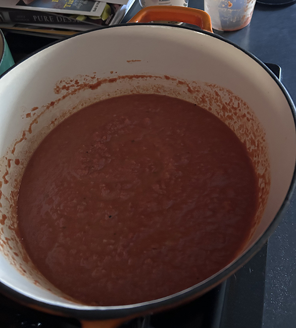 I thawed out some of the really good roasted tomato sauce I’d made with Tipi tomatoes from a U-Pick last summer, added turkey meatballs, and left it heating in the oven while we were at the movie. Then when we got home I made pasta and we had a quick albeit a bit late, dinner. And Tipi announced they’re done with CSA after cutting back the last few years. This year I’ll just be going out there for U-Picks and (I Hope) buying their carrots at the co-op.