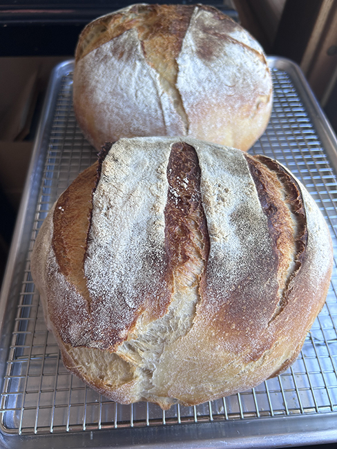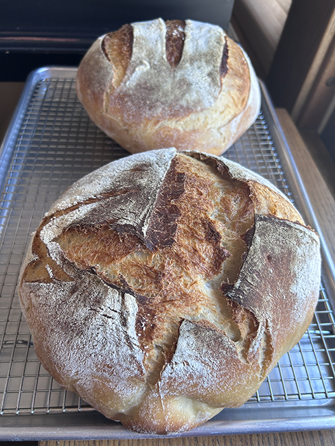 I left sourdough rising while we went to the market and baked it when we got back.