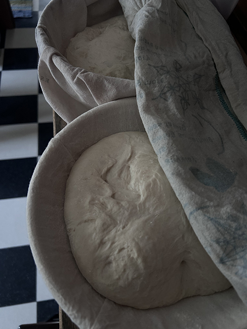 This picture has the loaf raised in the baneton in front.