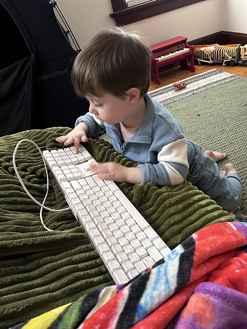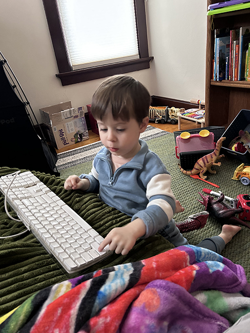 Jasper didn’t nap but we tried playing in his room. He was the mommy (or dada) and I was the baby, and I was supposed to say, “how much longer will you be working?” and he replied, “just another minute.”