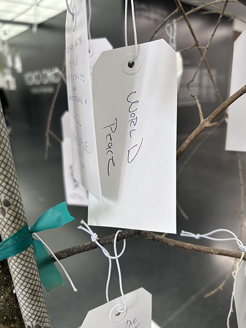 Thursday I got up and bussed over to the food pantry to volunteer. Mark stayed home to wait for the cleaners and started thinking about ways to avoid the snow that was due Friday morning, when we were scheduled to drive to Chicago. He suggested leaving Thursday afternoon instead of Friday morning, so I got us another hotel night and off we went. We had a kind of an OK dinner of greasy bar food – a burger with a side of “crispy” Brussels sprouts that I think must’ve been deep-fried, fish and chips, and warm dinner rolls with fancy WI butter that were probably the best thing. Friday we had a full day of museums, the Smart for Theaster Gates and the MCA for Yoko Ono, both shows that close today my mommy’s 101st birthday, February 22, dinner at avec, and the Chicago Symphony. Got up Saturday morning, ate Do-Rite donuts and a Publican Quality Breads Kougin Aman  (by way of Intelligensia), home by 3:00.