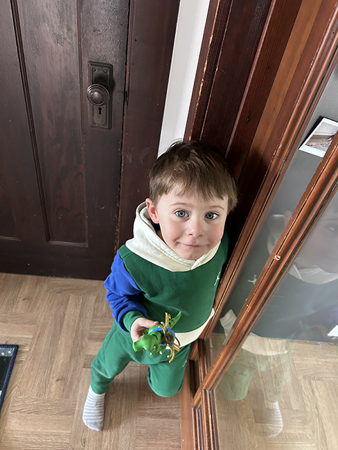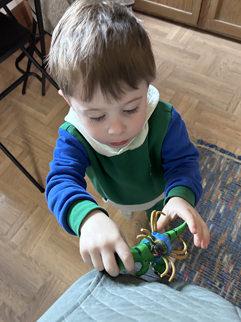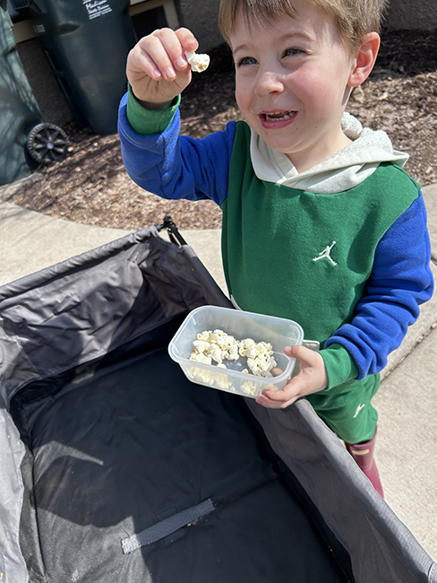 Jasper came Wednesday and there was a play date for his preschool at a park that’s near where we used to live when Al and John were small, before we moved to Chicago. There was a kind of wilderness area, where we sled-rided once and Al called it the crash course. In the wild there were steep dropoffs and kids crawling through culverts. There was also a playground. I think me & Jasper spent more time on the playground, though we did climb around some in the wild area. Another family brought popcorn and Jasper wanted it, but we only had apple slices and graham squares cereal – the co-op version of Golden Grahams.