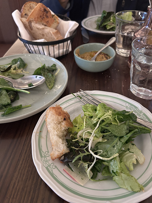 We had dinner at Cafe Yaya and then breakfast with John & Megan at a place in Roscoe Village called Lucy’s Cafe, that had plenty of eggy things for us, and also vegan things for John and Megan. No pics of Lucy’s; salad and orange squash dip at Yaya.
